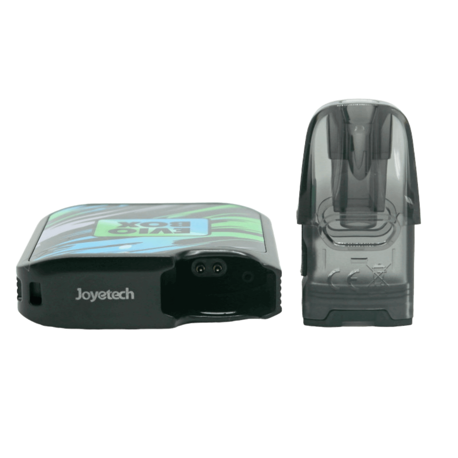 Картридж на Joyetech Evio Box такий самий, як на попередній моделі Joyetech EVIO С. З'єднання з батарейним блоком відбувається без магнітів, картридж щільно встановлюється в паз. Регулювання подиху в под-системі Evio Box просте - достатньо вийняти картридж з батарейного блоку, повернути його на 180 градусів і встановити знову. В картриджі використовуються змінні випарювачі Joyetech EN Mesh з опором 0,8 Ом і 1,2 Ом. Нагадаємо, що ці випарювачі на сітці, яка виготовлена за новою технологією компанії Joyetech - AST. Ця технологія збільшує термін служби випарювача та дозволяє отримати насичений смак протягом всього терміну експлуатації випарювача. Заправка картриджа Joyetech Evio Box максимально проста і схожа на більшість пристроїв. Необхідно вийняти картридж з батарейного блоку, відкрити силіконову заглушку (розташована на бічній поверхні) і налити потрібну рідину. На цьому пристрої рекомендується використовувати рідину з співвідношенням PG/VG 50/50.
