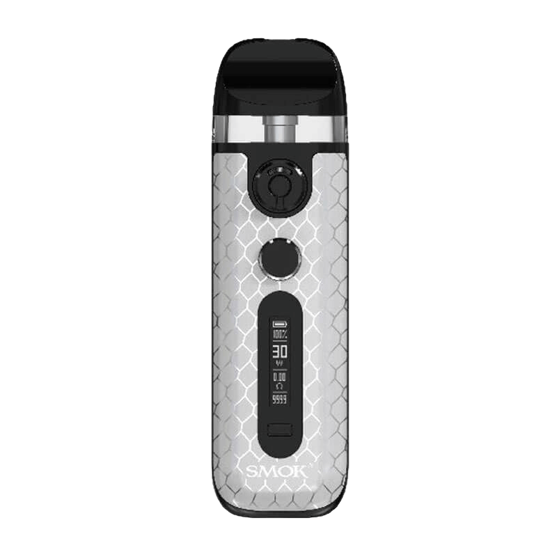 SMOK Novo 5 - це середньорозмірний девайс з вбудованим акумулятором великої ємності та унікальним чіпсетом, розробленим для використання з новими картриджами серії Novo 5. Пристрій має компактний дизайн з закругленими краями та кутами, що забезпечує комфортне використання. За допомогою унікального чіпсета можна регулювати потужність в діапазоні від 5 до 30 Вт, і акумулятор здатний працювати від двох до трьох днів з одного заряду. Дизайн SMOK Novo 5 Pod зберігає характерні риси попередніх версій, відрізняючись закругленими краями та кутами, а також ергономічним дизайном. Цей пристрій пропонується в двох варіантах: звичайному та шкіряному, з різними розмірами та стилями. POD-система має розміри 96*29*18,9 мм. В звичайній версії використовуються стандартні пластикові панелі з унікальними візерунками, а в шкіряній версії - панелі з екокожи, більш приємні на дотик. Система SMOK Novo 5 доступна в 14 різних варіантах кольорів, включаючи Cobra: Silver Black, Silver Red, Rasta Green, 7-Color, Green Blue, White, Black, а також Fluid 7-Color, Fluid Black Grey, Red Stabilizing Wood, Beige White Leather, Brown Leather, Grey Leather і Black Carbon Fiber.